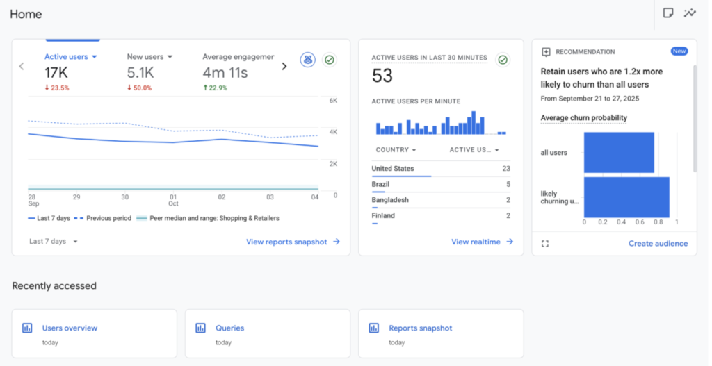 - As soon as google analytics is opened, marketers can see how many potential car buyers have opened their site, from where they are viewing it, and even how likely they are to churn, which can help them form valuable insights on user acquisition.